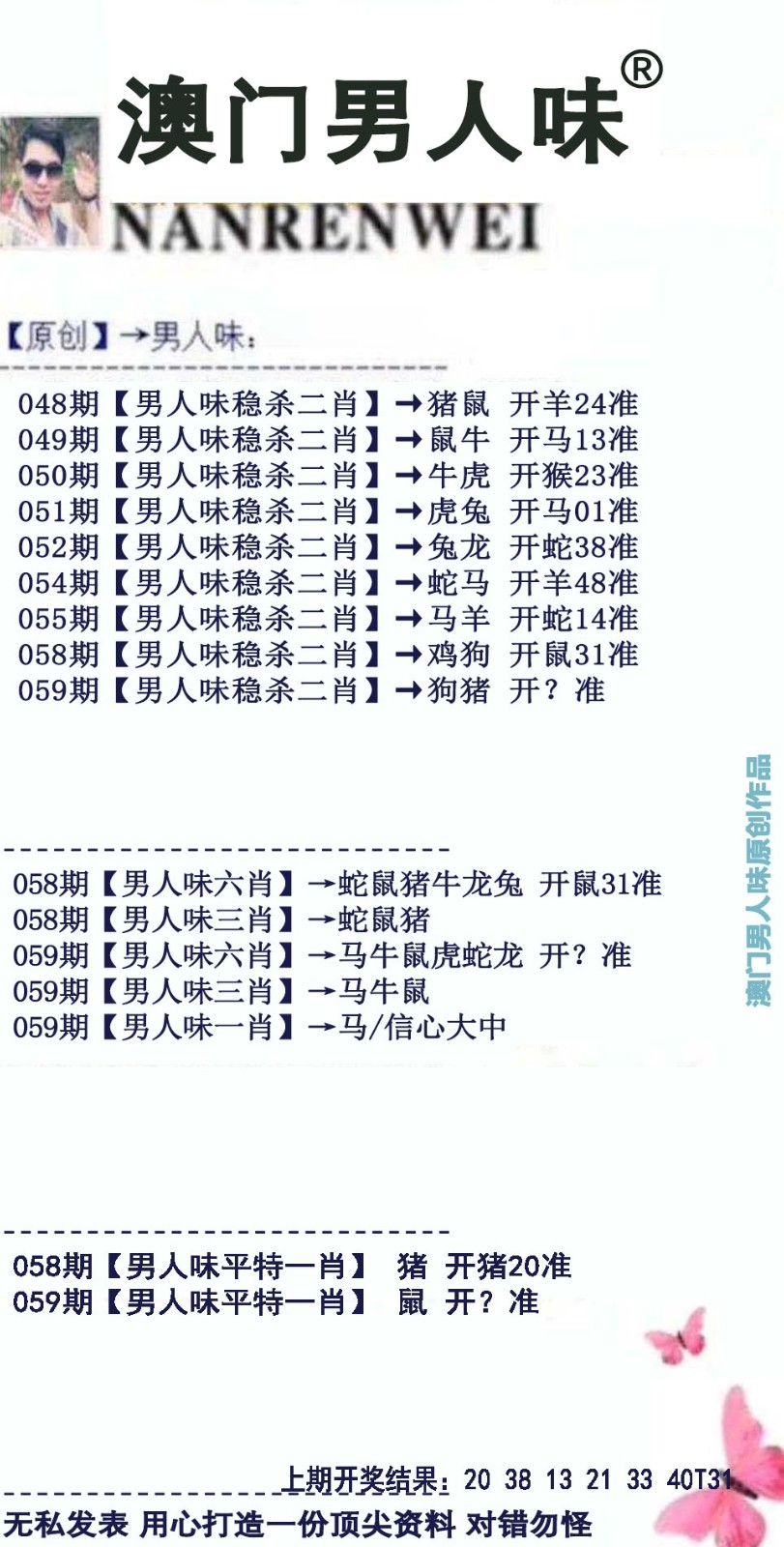 资料最准059期:澳彩之家【日夜中特】
