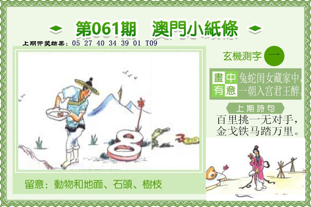 一语玄机:061期澳门小纸条