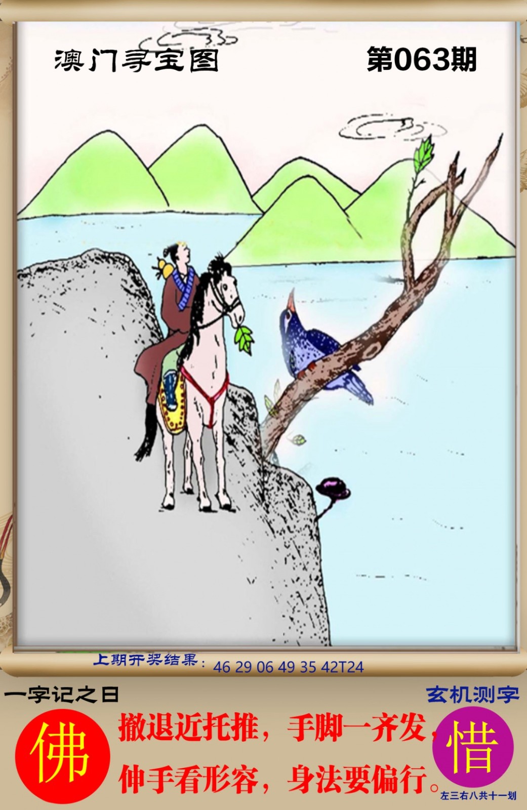猜字谜063期:澳彩之家【绝杀一段】