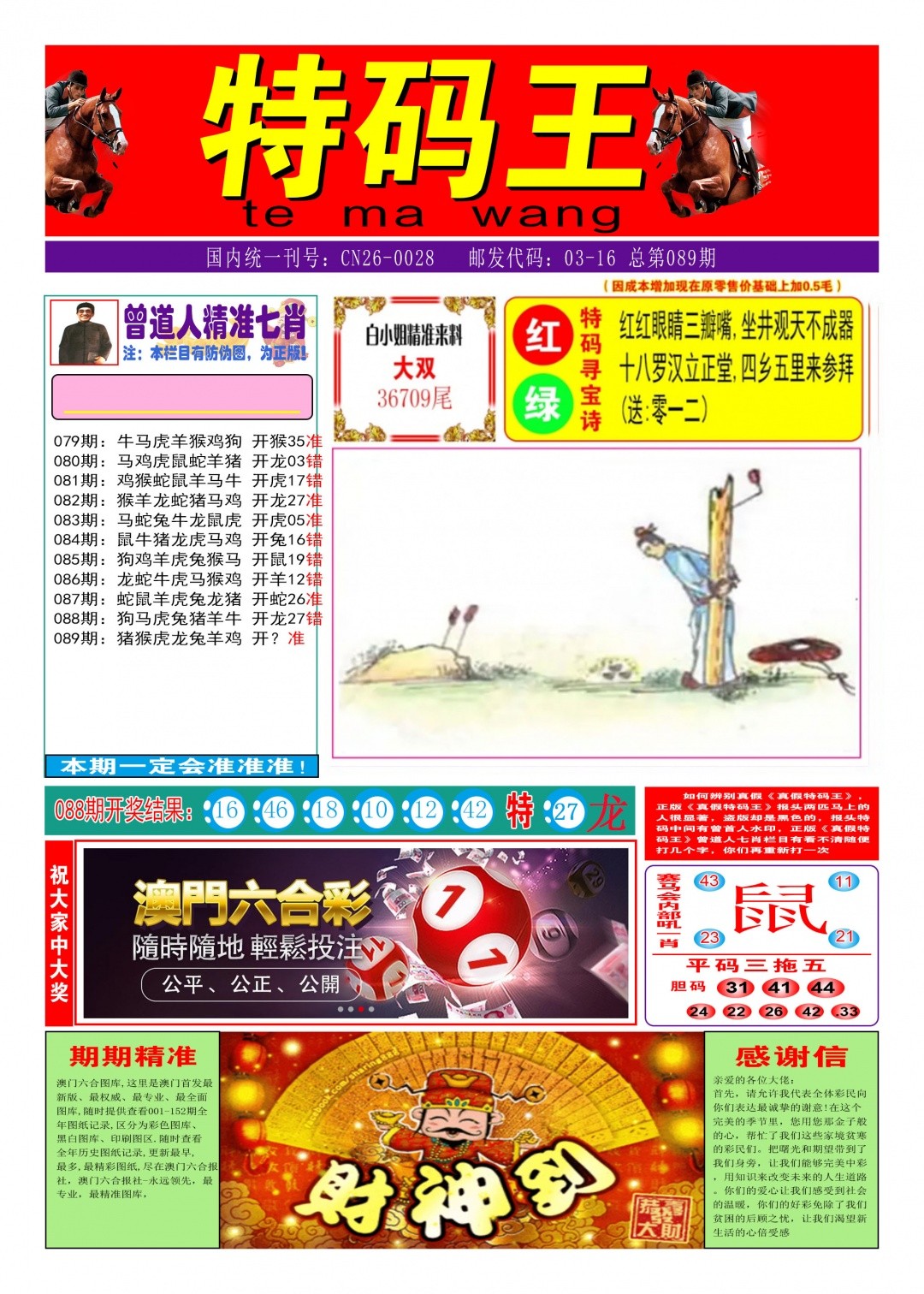 088期极限新码皇香港区:报彩神童【四肖四码