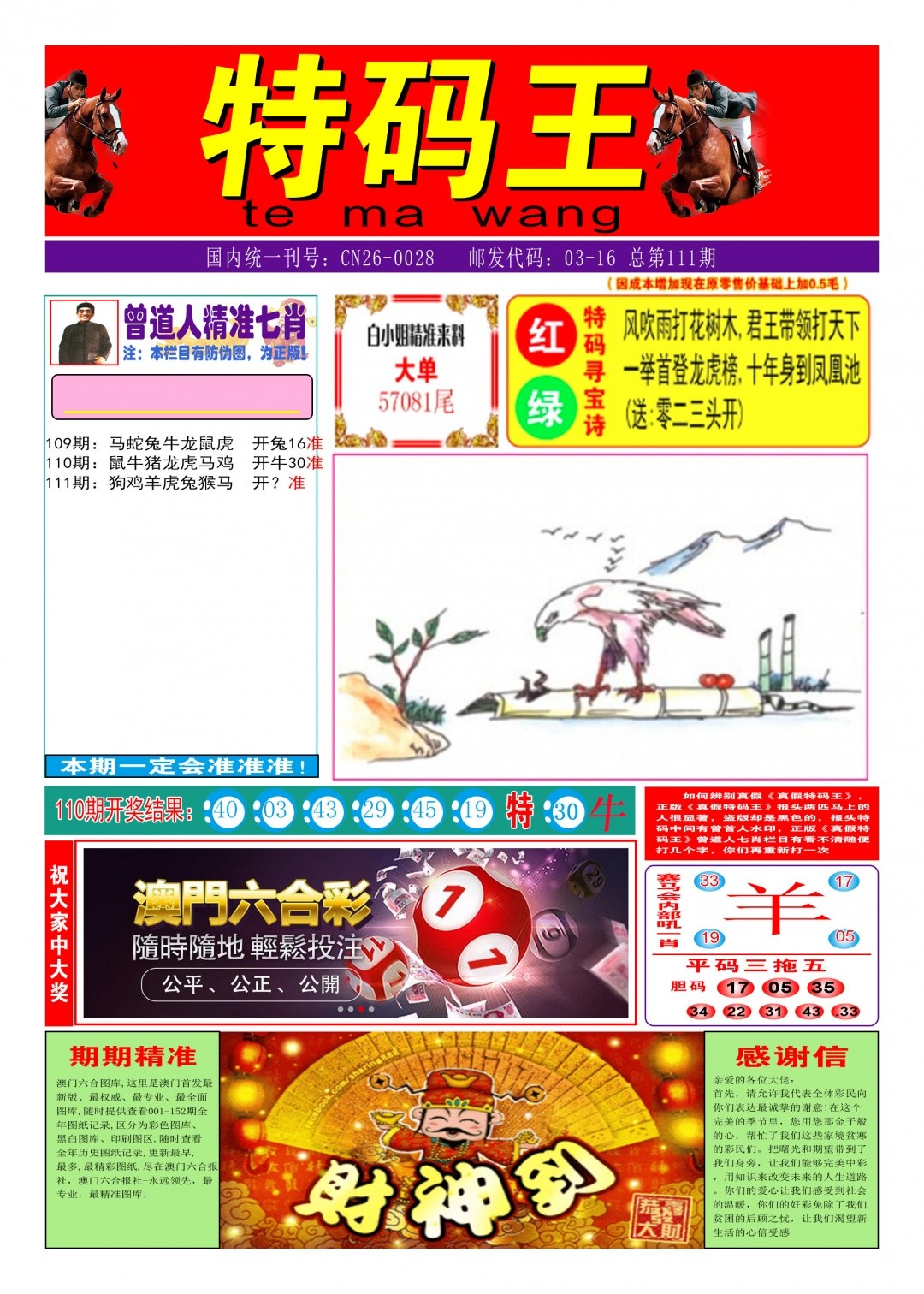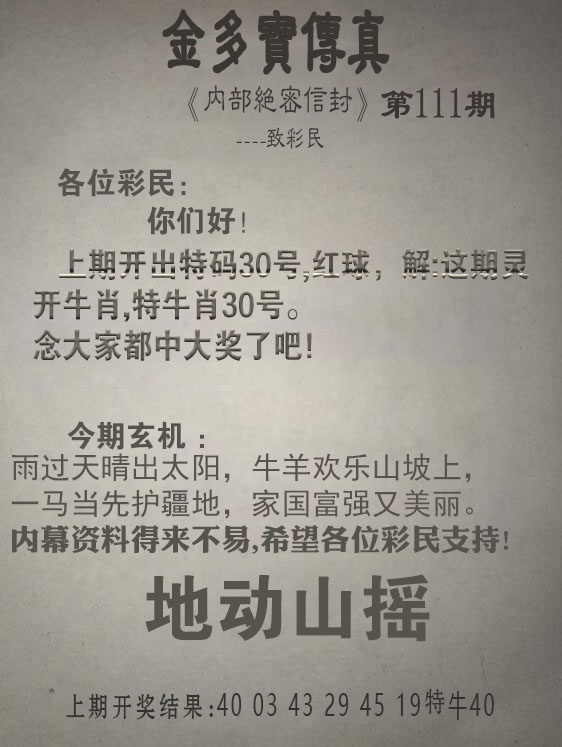 今晚澳门特码:110期澳门传真