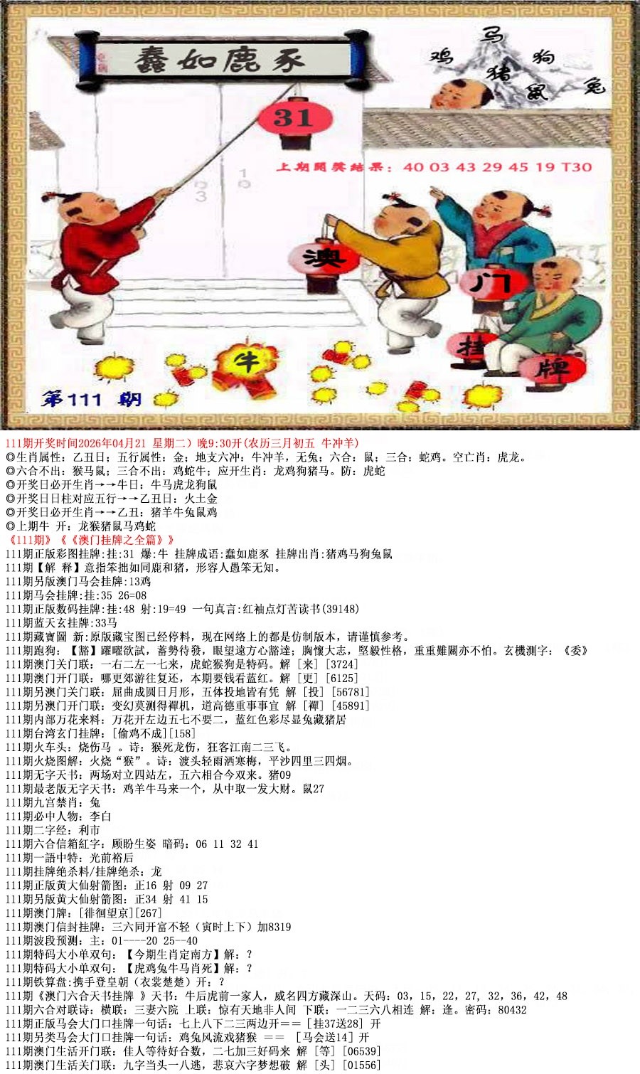 澳彩权威资料:060期澳彩之家【玄机一点通】