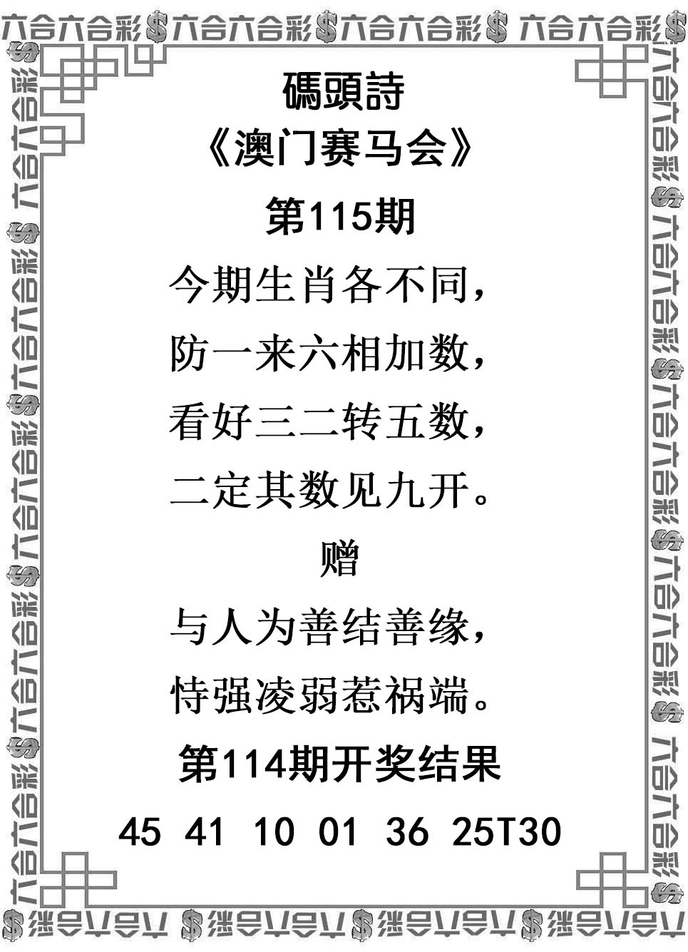 澳门六合彩115期:跑马图